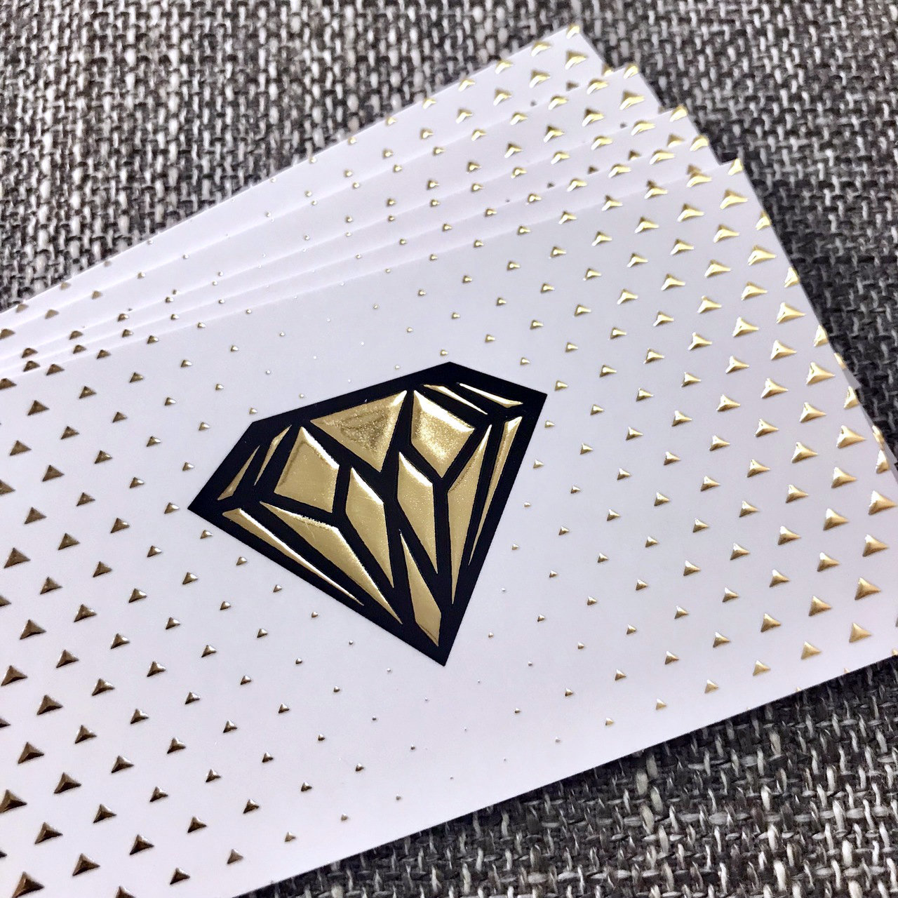Win2win with Raised Foil. Add a flash of brilliance to suede cards that you can see and feel. The combination of raised foil contrasted with the velvety smooth suede foundation creates a tactile experience that customers can see and feel. Metallic embossment effects can enhance amazing detail in images, special accents, and logos. The Suede Cards are printed on 16pt card stock, laminated on both sides with 1.5mil scuff resistant, soft velvet laminate, which give them a substantial thickness of 19pt.